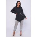 Элегантная женская туника, выполнена из плотной ткани. Свободный силуэт,  средней длины, округлая горловина, длинный рукав. Подойдет для повседневного образа и для особого случая