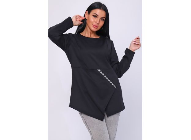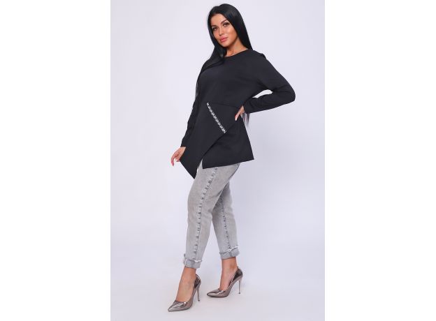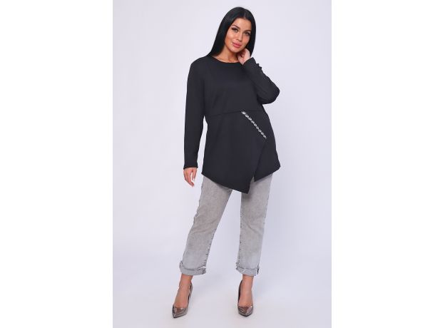 Элегантная женская туника, выполнена из плотной ткани. Свободный силуэт, средней длины, округлая горловина, длинный рукав. Подойдет для повседневного образа и для особого случая