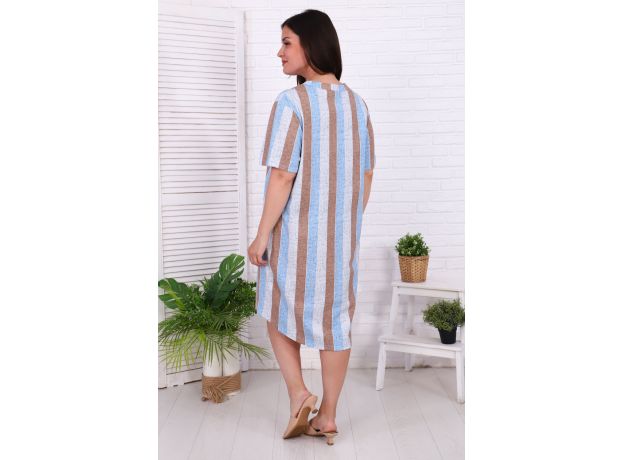 Туника полуприлегающего силуэта с V-образным вырезом горловины. По переду планка-застежка, в боковых швах карманы. Рукав короткий. Длина средняя.