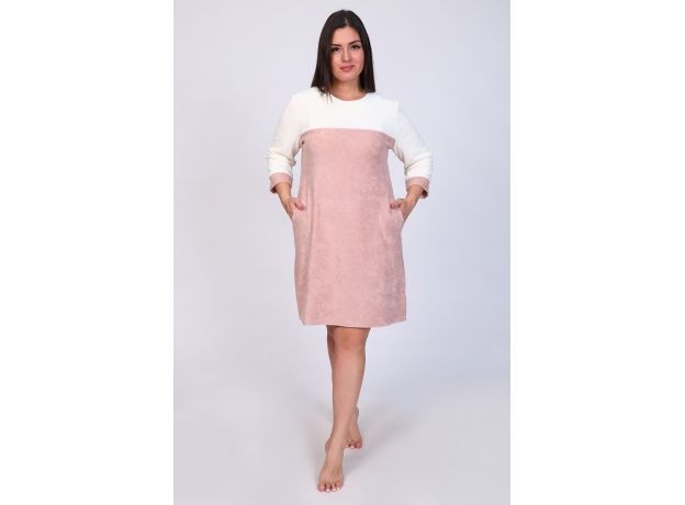 Туника женская с отделочной кокеткой и рукавом 3/4 из мягкой хлопковой махры. Средней длины, с карманами в боковых швах.