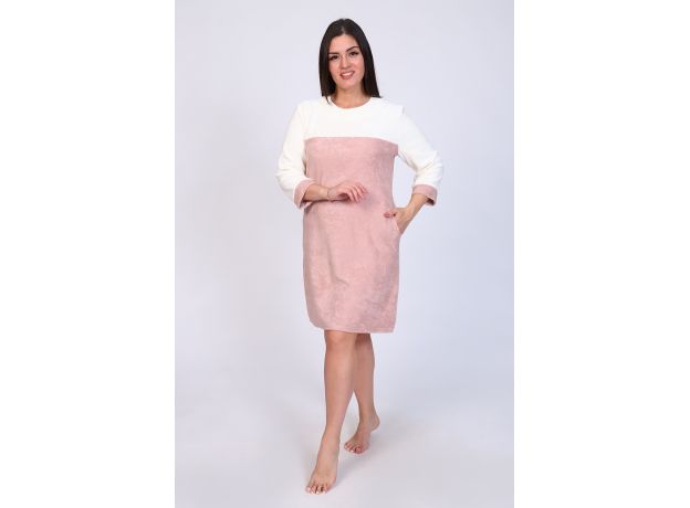 Туника женская с отделочной кокеткой и рукавом 3/4 из мягкой хлопковой махры. Средней длины, с карманами в боковых швах.