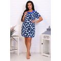 Женская туника из кулирки с коротким рукавом, фигурной горловиной из отделочной ткани. Низ фигурный.