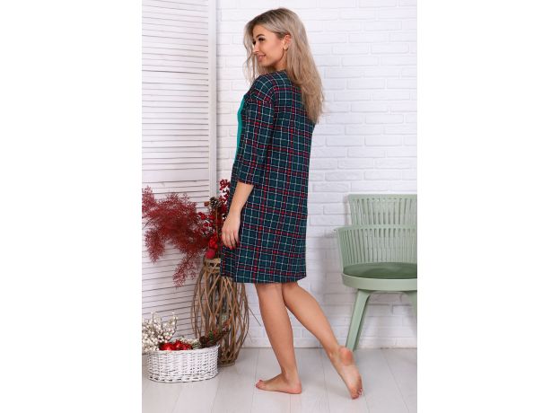 Туника домашняя в трендовой расцветке. На груди интересная печать. Рукав 3/4, без карманов.
