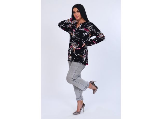 Туника женская с длинным рукавом из 100% хлопка. Оригинальная горловина с планкой без пуговиц. Низ изделия ассиметричен.