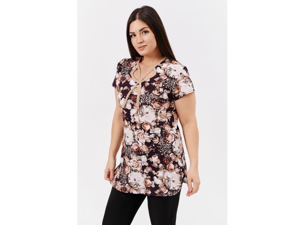 Женская туника до середины бедра. Фигурный вырез горловины элегантно подчеркивает грудь. Туника прямого силуэта отлично сидит на фигуре, подойдет для повседневной жизни и как домашняя одежда.