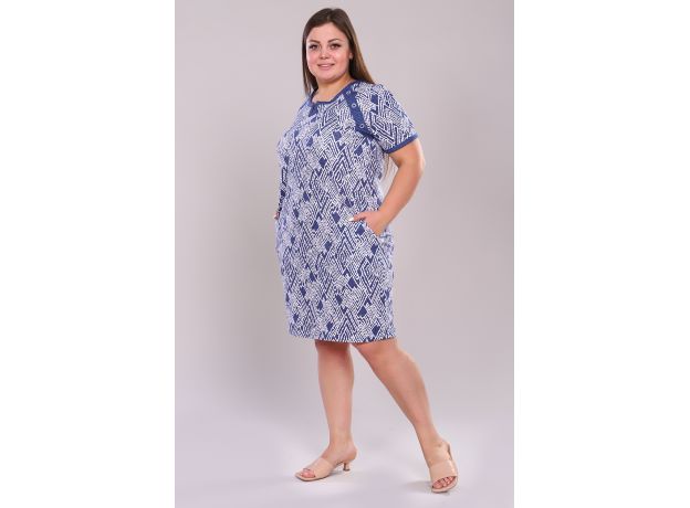 Туника женская из кулирного полотна, прямой силуэт, фигурная горловина, рукав короткий - реглан, в боковых швах карманы. Изделие выполнено из 100% хлопка, благодаря чему модель удобна в носке и легка