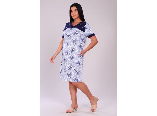 Туника женская из кулирного полотна, прямой силуэт, фигурная горловина, рукав короткий, в боковых швах карманы. Изделие выполнено из 100% хлопка, благодаря чему модель удобна в носке и легка в уходе. Данная модель отлично подойдет на каждый день.