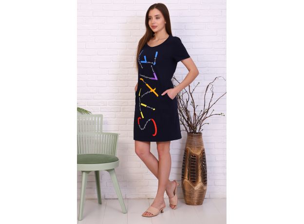 Стильная туника из кулирного полотна, прямого кроя, горловина круглая, рукав короткий, в боковых швах внутренние карманы, на полочке принт. Изделие легкое в уходе. Туника прекрасно подойдет для дома, дачи, прогулок.
