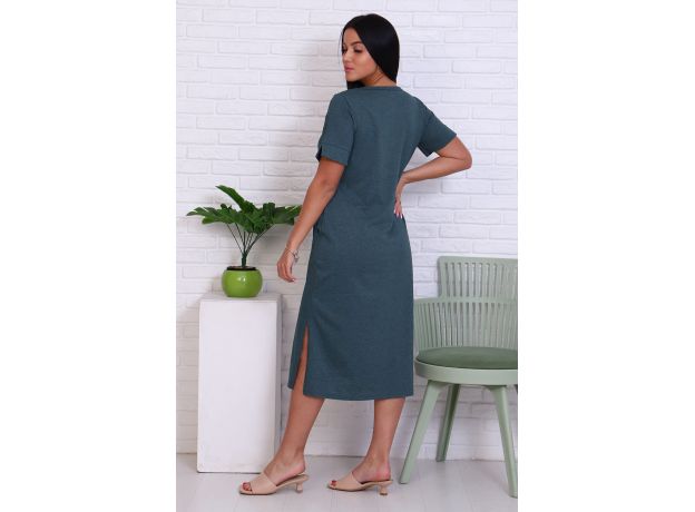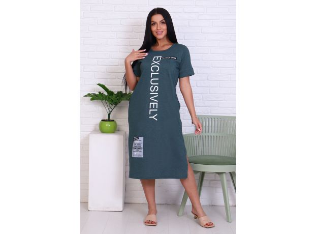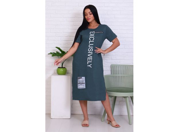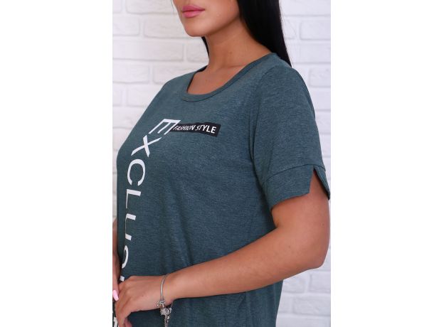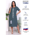 Туника женская из кулирного полотна, прямой силуэт, горловина круглая, рукав короткий, втачной, в боковых швах внутренние карманы, сбоку разрез, низ изделия обработан на плоскошовной машине, на полочке принт.