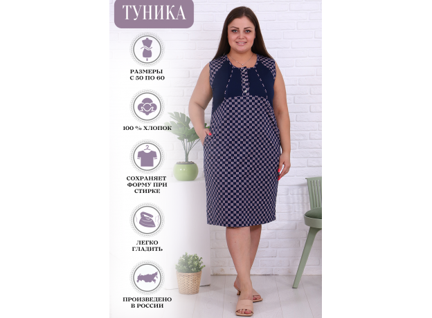 Стильная женская туника из кулирного полотна. Отличный вариант на каждый день. Изделие выполнено из 100% хлопка, благодаря чему модель удобна в носке и легка в уходе. На модели 54 размер