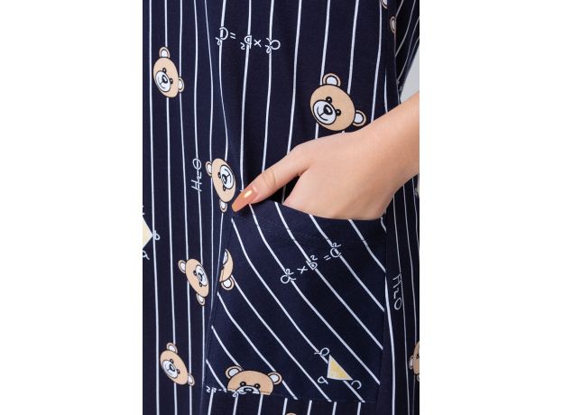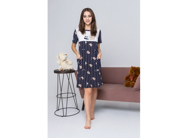 Туника женская из кулирного полотна, горловина круглая, рукав короткий, втачной, накладные карманы, низ изделия обработан на плоскошовной машине, на полочке принт. Изделие легкое в уходе, выполнено из 100% хлопка. Туника прекрасно подходит на каждый день.