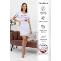 Туника женская из кулирного полотна, горловина круглая, рукав короткий, втачной, спущенное плечо, в боковых швах внутренние карманы, низ изделия обработан на плоскошовной машине, на полочке принт. Благодаря натуральному составу вам будет уютно. Изделие подходит для повседневной носки, легкое в уходе. Цвет окантовки может отличаться