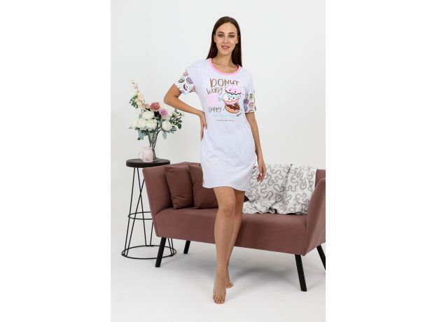 Туника женская из кулирного полотна, горловина круглая, рукав короткий, втачной, спущенное плечо, в боковых швах внутренние карманы, низ изделия обработан на плоскошовной машине, на полочке принт. Благодаря натуральному составу вам будет уютно. Изделие подходит для повседневной носки, легкое в уходе. Цвет окантовки может отличаться