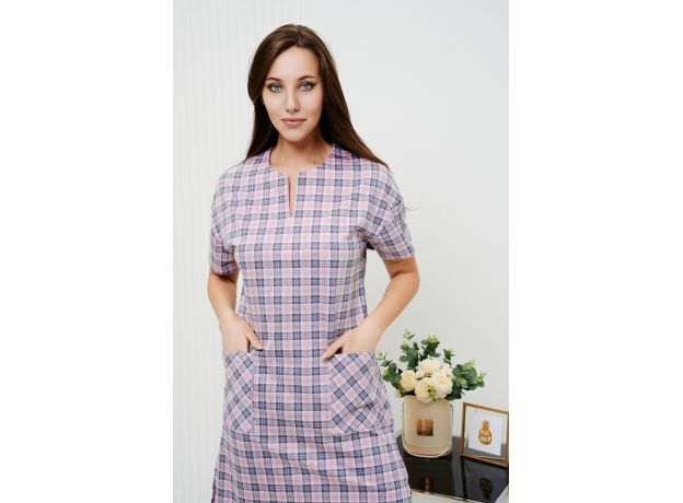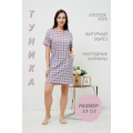 Туника женская из кулирного полотна, состав 100% хлопок. Туника прямого кроя с разрезами в боковых швах, слегка расширена книзу, горловина с фигурным вырезом обработана обтачкой из ткани- компаньона, на полочке накладные карманы, рукава и низ туники подогнуты на плоскошовной машине. В этой тунике вам будет удобно и комфортно. Легкая в уходе.