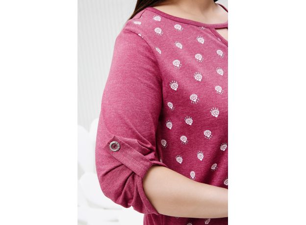 Туника женская прямого свободного кроя, состав 50% хлопок, 50% ПЭ. Горловина туники круглая с фигурной капелькой обработана окантовкой, рукав туники 3/4 с хлястиком на декоративной пуговице, низ обработан на плоскошовной машине, по бокам низа хлястики с декоративными пуговицами, на полочке печать. Туника легкая в уходе, подойдет для повседневной носки.