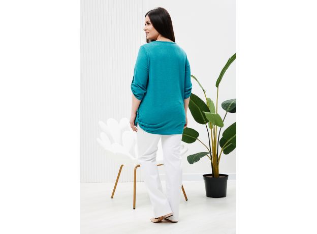 Туника женская прямого свободного кроя, состав 50% хлопок, 50% ПЭ. Горловина туники круглая с фигурной капелькой обработана окантовкой, рукав туники 3/4 с хлястиком на декоративной пуговице, низ обработан на плоскошовной машине, по бокам низа хлястики с декоративными пуговицами, на полочке печать. Туника легкая в уходе, подойдет для повседневной носки.