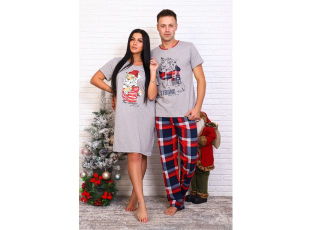 Женская туника для комфортного отдыха. Туника прямого силуэта, на полочке принт с новогодней тематикой. Короткий вшивной рукав с отложным манжетом. Изделие можно использовать как домашнюю одежду или как ночную рубашку.