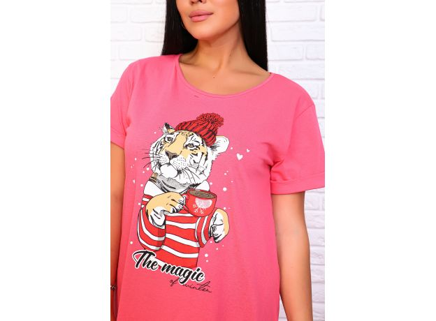 Женская туника для комфортного отдыха. Туника прямого силуэта, на полочке принт с новогодней тематикой. Короткий вшивной рукав с отложным манжетом. Изделие можно использовать как домашнюю одежду или как ночную рубашку.