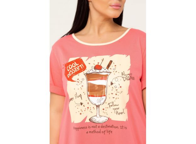 Нежные весенние цвета и оригинальный принт - все для милых дам и весеннего настроения!! Отличный подарок на весенние праздники и не только. Туника женская прямого силуэта, на полочке принт. Короткий вшивной рукав с отложным манжетом. Отлично подойдет для домашнего отдыха и сна