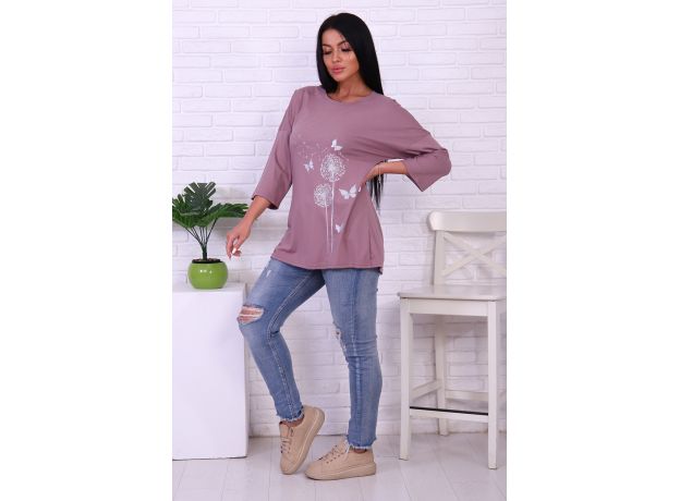 Туника выполнена из мягкого хлопка с нежным принтом одуванчиков, присыпанным глиттером. Модель свободного кроя, рукав 3/4, горловина втачная, низ и рукава вподгибку.