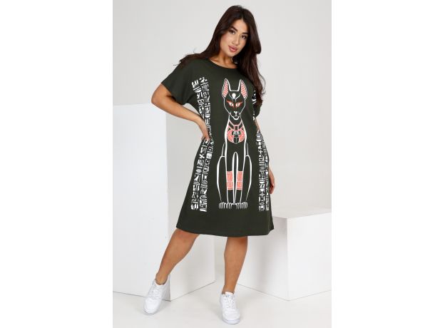 Оригинальная повседневная туника бренда Modalina из 100 % хлопка. Туника прекрасно подойдет для выхода на улицу в летнее время, прогулок на пляж и конечно, для дома, а также станет прекрасным подарком Вашим друзьям и близким. Туника полуприлегающего силуэта, рукав спущенный, короткий, круглый вырез горловины, прорезные карманы, дизайнерский принт Египетская кошка, длина изделия до колена. Данная модель отлично подойдет на любой тип фигуры и на любой возраст. Надеемся Вы останетесь довольны покупкой! Мы работаем для Вас! Возможны расхождения в оттенках представленных на сайте.