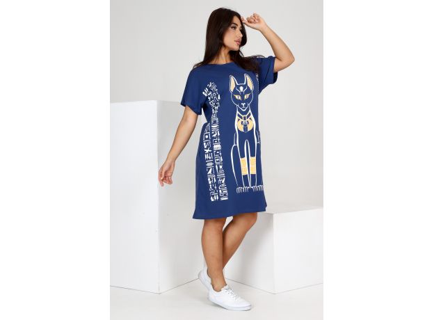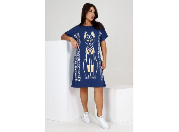Оригинальная повседневная туника бренда Modalina из 100 % хлопка. Туника прекрасно подойдет для выхода на улицу в летнее время, прогулок на пляж и конечно, для дома, а также станет прекрасным подарком Вашим друзьям и близким. Туника полуприлегающего силуэта, рукав спущенный, короткий, круглый вырез горловины, прорезные карманы, дизайнерский принт Египетская кошка, длина изделия до колена. Данная модель отлично подойдет на любой тип фигуры и на любой возраст. Надеемся Вы останетесь довольны покупкой! Мы работаем для Вас! Возможны расхождения в оттенках представленных на сайте.