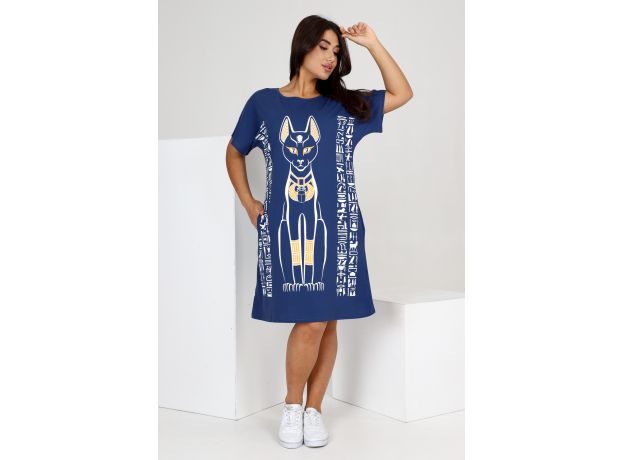 Оригинальная повседневная туника бренда Modalina из 100 % хлопка. Туника прекрасно подойдет для выхода на улицу в летнее время, прогулок на пляж и конечно, для дома, а также станет прекрасным подарком Вашим друзьям и близким. Туника полуприлегающего силуэта, рукав спущенный, короткий, круглый вырез горловины, прорезные карманы, дизайнерский принт Египетская кошка, длина изделия до колена. Данная модель отлично подойдет на любой тип фигуры и на любой возраст. Надеемся Вы останетесь довольны покупкой! Мы работаем для Вас! Возможны расхождения в оттенках представленных на сайте.