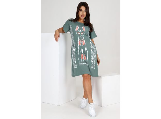 Оригинальная повседневная туника бренда Modalina из 100 % хлопка. Туника прекрасно подойдет для выхода на улицу в летнее время, прогулок на пляж и конечно, для дома, а также станет прекрасным подарком Вашим друзьям и близким. Туника полуприлегающего силуэта, рукав спущенный, короткий, круглый вырез горловины, прорезные карманы, дизайнерский принт Египетская кошка, длина изделия до колена. Данная модель отлично подойдет на любой тип фигуры и на любой возраст. Надеемся Вы останетесь довольны покупкой! Мы работаем для Вас! Возможны расхождения в оттенках представленных на сайте.