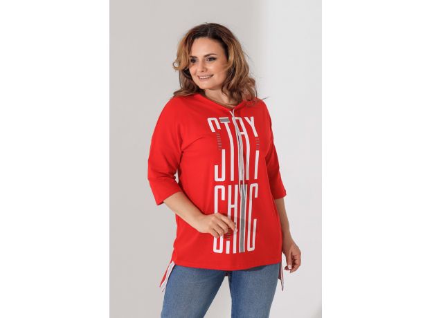 Женская туника представлена в 5 расцветках - красный, молочный, черный, лиловый, фисташковый. Выполнена из ткани высшего качества. Шнурок с тесьмой отлично сочетаются с принтом на полочке. Спинка горловины отделана усилением.