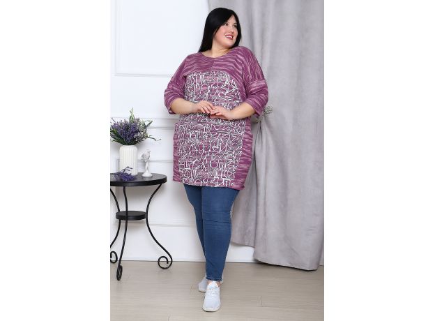Туника женская III полноты. Комбинированная из двух видов трикотажного полотна. Рукав на спущенным плече, общая длина 3/4.