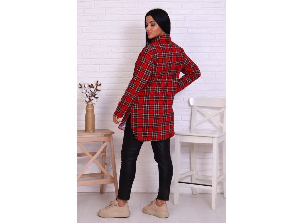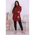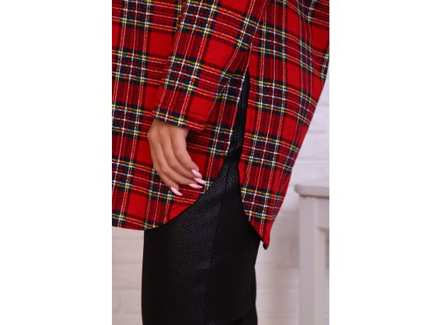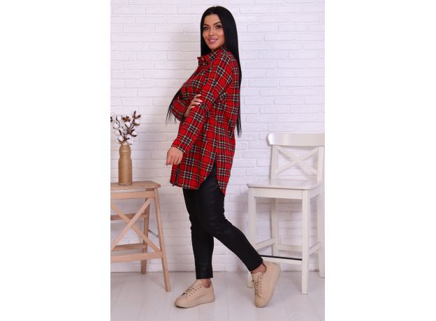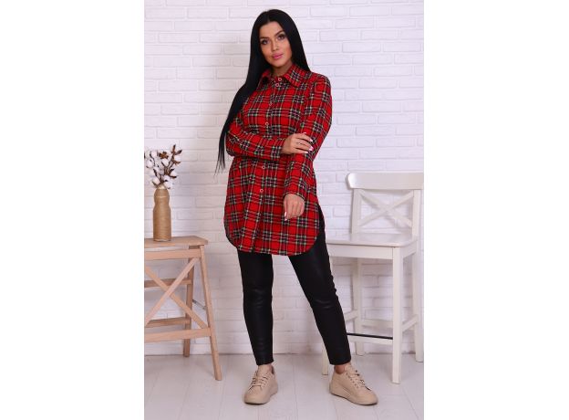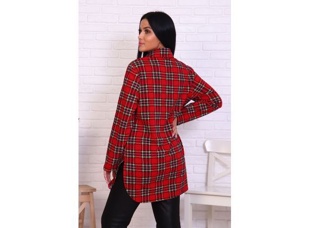 Туника женская удлиненная прямого силуэта с длинным рукавом, воротник на стойке. Застежка петли-пуговицы. Фигурная линия низа и боковые разрезы. Отличный вариант для повседневной носки.