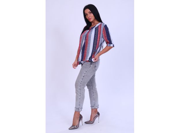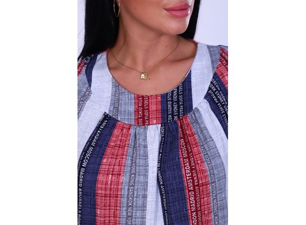 Туника женская в полоску свободного силуэта, по полочке выполнена сборка, оформленная обтачкой по горловине, рукав втачной с манжетом, низ изделия на поясе. Замечательный вариант для повседневной носки, подойдет к любому низу.