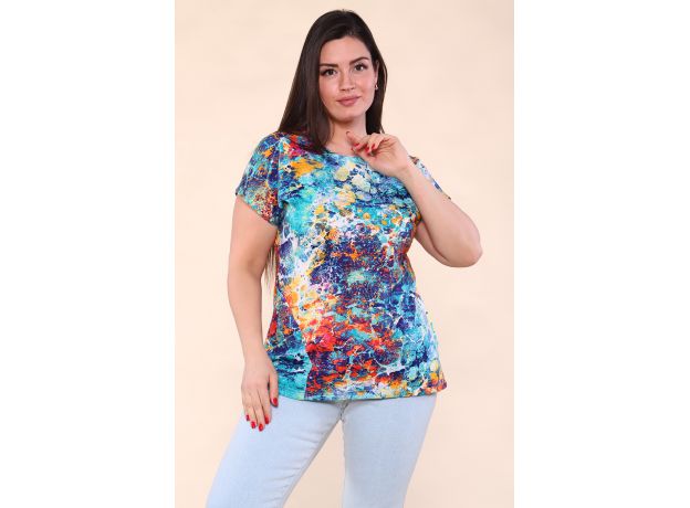 Туника женская свободного силуэта со спущенным рукавом, на полочке имеются накладные карманы. Рост модели на фото 165 см, размер 48
