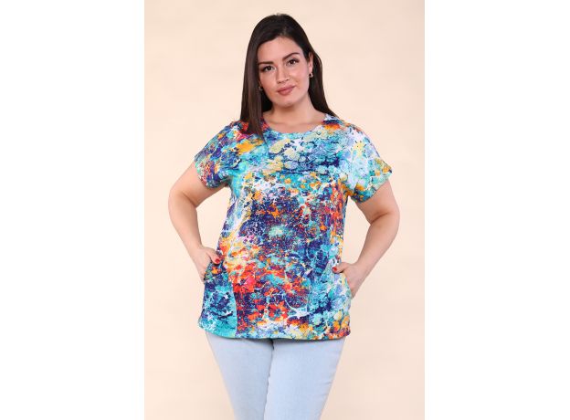Туника женская свободного силуэта со спущенным рукавом, на полочке имеются накладные карманы. Рост модели на фото 165 см, размер 48