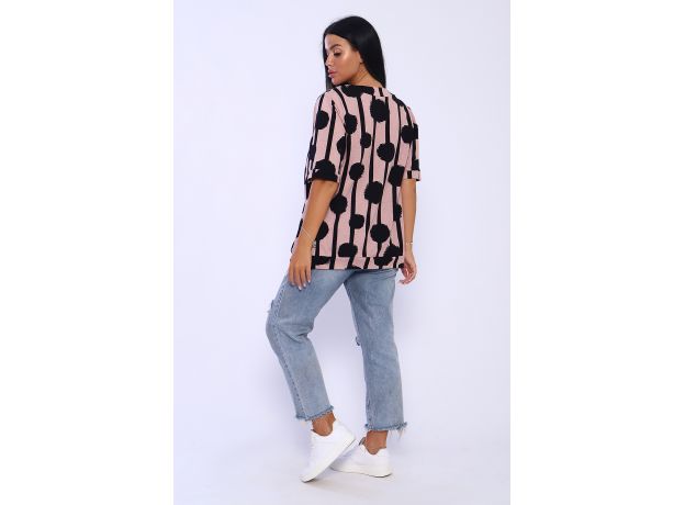 Туника женская свободного силуэта, по полочке выполнена сборка, оформленная обтачкой по горловине, рукав втачной с манжетом, низ изделия на поясе.