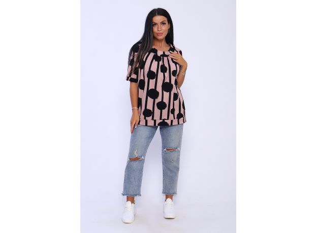 Туника женская свободного силуэта, по полочке выполнена сборка, оформленная обтачкой по горловине, рукав втачной с манжетом, низ изделия на поясе.