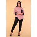 Женская туника прямого кроя. Рукав спущенный 3/4, манжеты из эко-кожи. Фигурный V-образный низ декорирован пуговицами. На передней полочке нагрудной накладной карман с клапаном из эко-кожи. Легкая и практичная.
