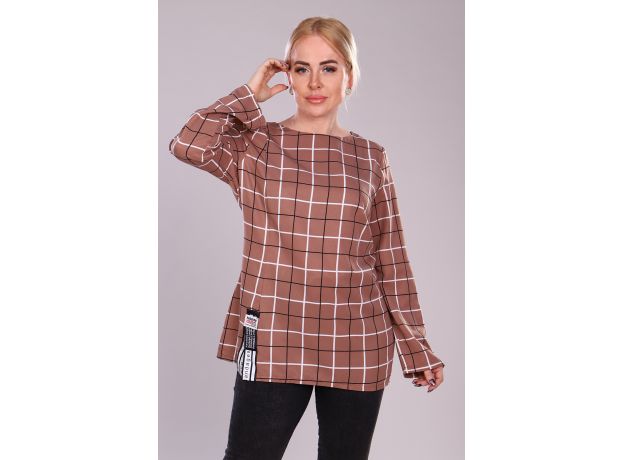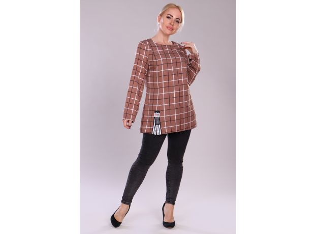 Туника женская, округлый ворот, длинный рукав. Полочка декорирована контрастной вставкой, снизу разрез. Легкая и практичная.