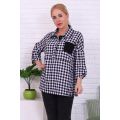 Туника женская прямого силуэта на пуговицах. Рубашечный воротник, рукав 3/4, паты на рукавах, закрепленные пуговицами. На передней полочке нагрудный карман. Стильная и современная туника.