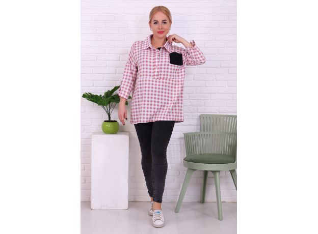 Туника женская прямого силуэта на пуговицах. Рубашечный воротник, рукав 3/4, паты на рукавах, закрепленные пуговицами. На передней полочке нагрудный карман. Стильная и современная туника.