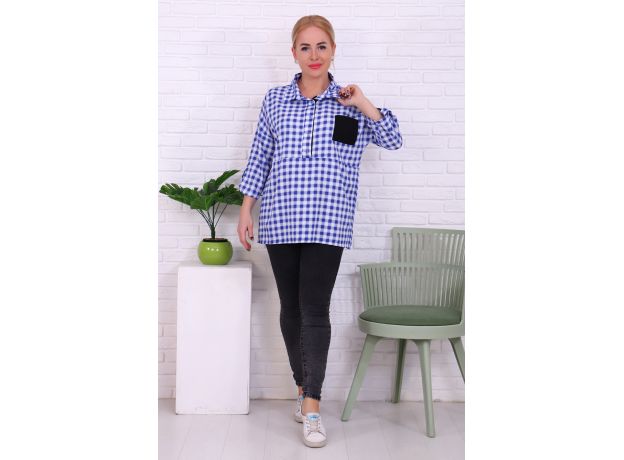 Туника женская прямого силуэта на пуговицах. Рубашечный воротник, рукав 3/4, паты на рукавах, закрепленные пуговицами. На передней полочке нагрудный карман. Стильная и современная туника.