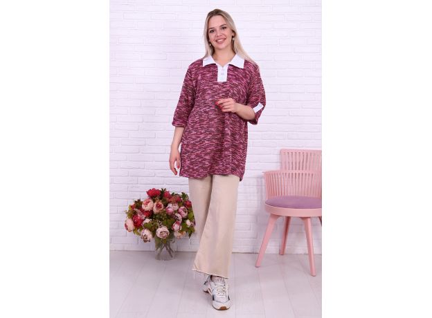 Туника женская, силуэт трапеция. Рубашечный воротник, короткий рукав подобран на паты с пуговицей. На передней полочке украшение в виде пуговиц. Легкая, удобная, практичная.