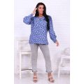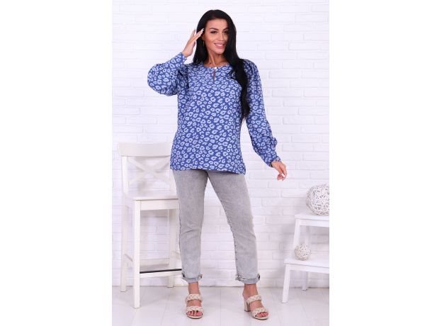 Туника женская прямого силуэта. Длинный рукав-колокол на манжете. Округлый воротник, застежка спереди на пуговицу. Стильная и легкая.