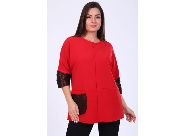 Элегантная туника с рукавом 3/4,молния сзади, воротник круглый. Округлые карманы по бокам. Подходит для повседневной носки