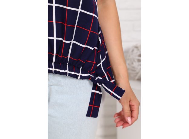Легкая летняя туника, свободного кроя, округлый ворот, без рукавов. Низ передней полочки декорирован резинкой с завязками. Практичная и удобная.