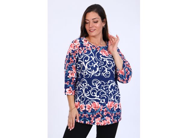 Туника женская прямого силуэта. Округлый воротник. Рукав три четверти на манжете. Отрезная с кокеткой. На передней полочке втачной шов посередине. Удобная и практичная.