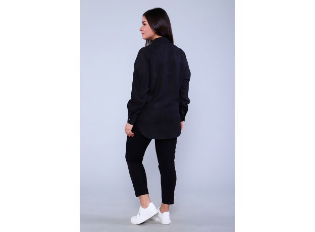 Туника женская, рубашечного типа на пуговицах, спущенный рукав 3/4, длина указана от шва. На передней полочке накладной карман. Округленный низ, задняя полочка длиннее передней. Удобная и практичная.