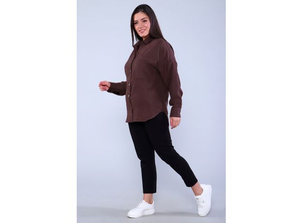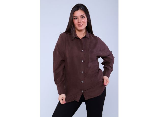 Туника женская, рубашечного типа на пуговицах, спущенный рукав 3/4, длина указана от шва. На передней полочке накладной карман. Округленный низ, задняя полочка длиннее передней. Удобная и практичная.