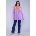 Туника комбинированная прямого силуэта, спущенный рукав 3/4,длина рукава от шва, без манжетов. Воротник рубашечного типа, верх полочек из материала акрил. Передняя полочка декорирована разрезом(на запах). Удобно и практично.