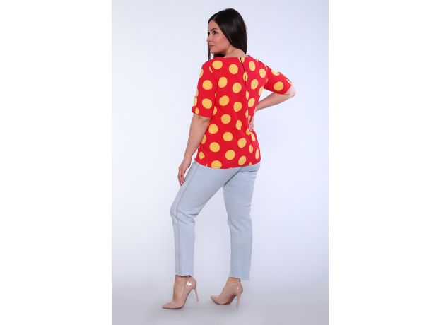 Туника женская прямого силуэта, короткий рукав на патах, округлый воротник, сзади застежка на молнию. Легкая и удобная. Рост модели на фото 165 см, размер 48